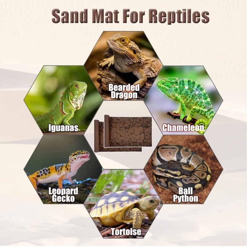 REVERSIBLE SAND MAT:The lepord gecko tank carpets can be used on both sides, one with a natural rock pattern and the other in brown for a more desert look. It will fit nicely into your tropical desert reptile tank as a backdrop for a beard dragon enclosure decorative supplies
