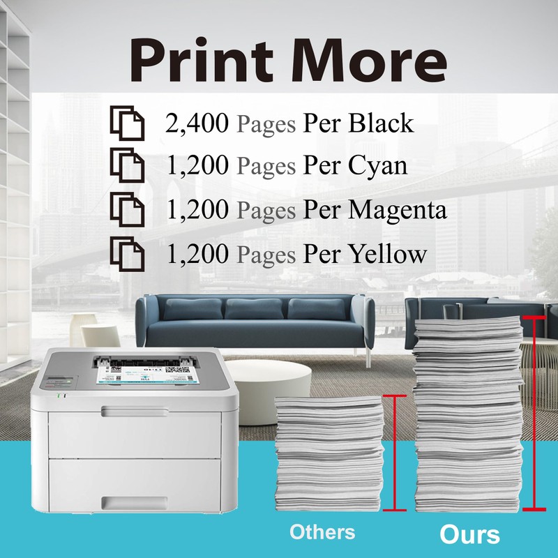 - High Yield Ink Cartridges: Black is 2,400 pages per cartridge, Color is 1,200 pages per cartridge @ 5% Coverage per cartridge