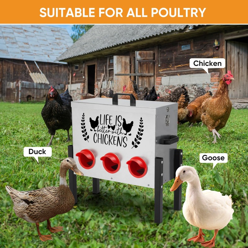- 【Wrapped Cover】 The chicken feed box uses a durable wrapped metal cover to ensure effective prevention of rainwater from entering the interior, thereby keeping the feed dry and fresh.