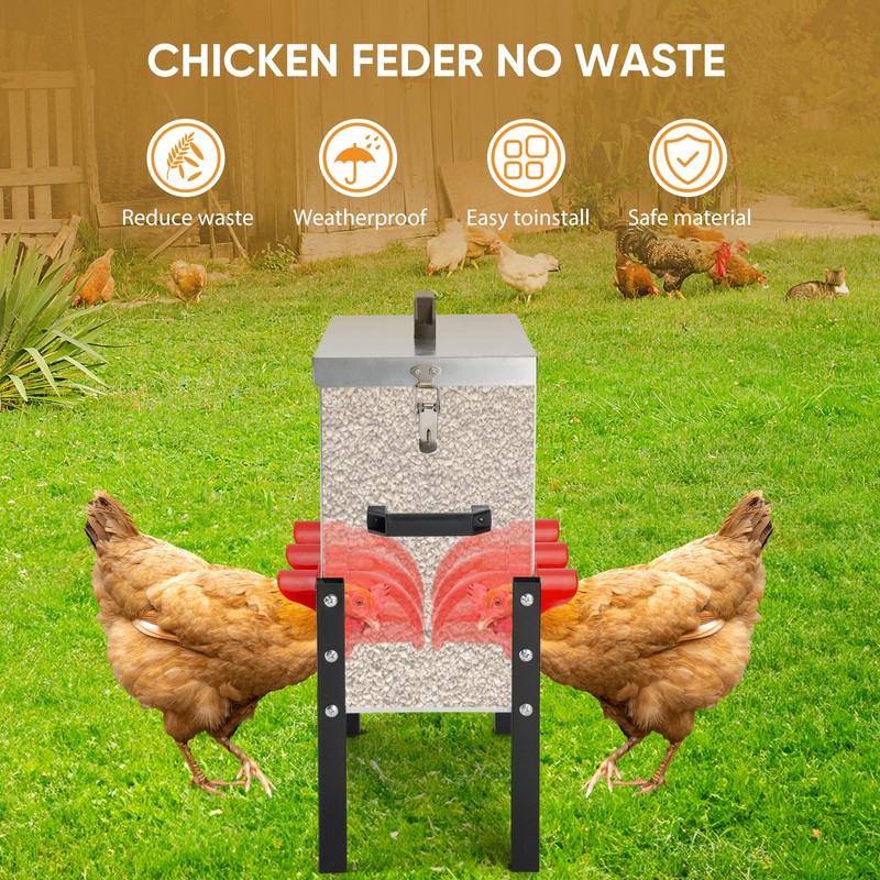 Tgeyd Chicken Feeder Box 30 lbs Galvanized Metal, 6 Feeding Ports, Comes with Metal Feeder Box Stands for Chickens, Ducks, Geese