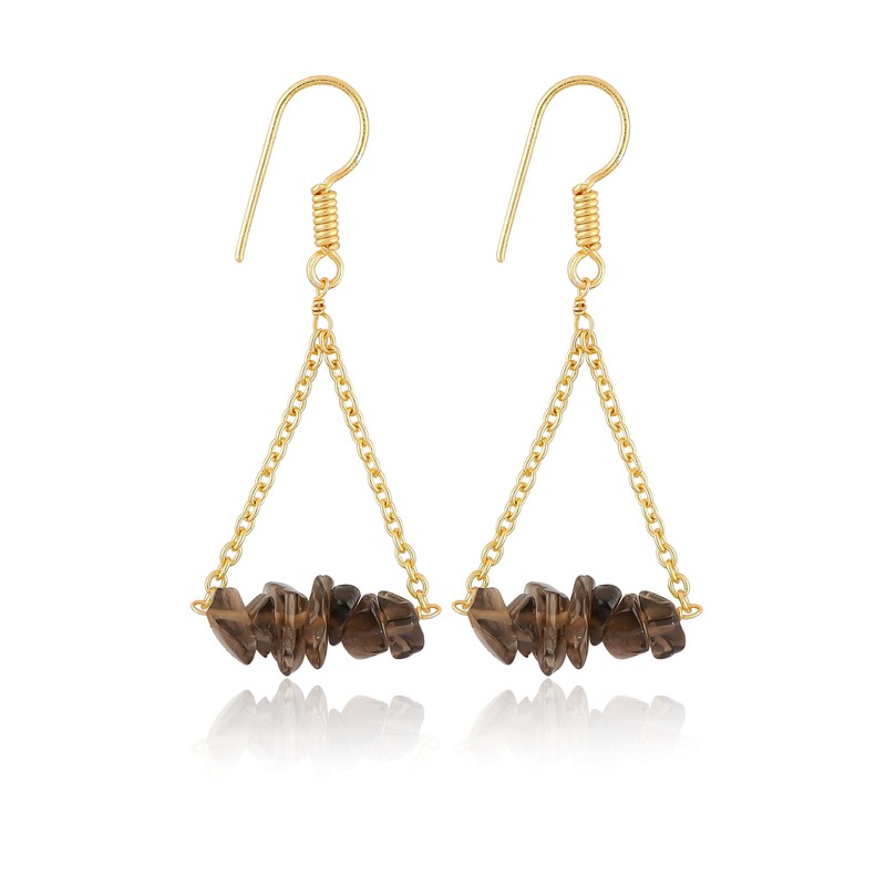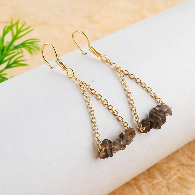 - Genuine Smoky Quartz Chips: These earrings feature authentic smoky quartz gemstone chips, known for their earthy, translucent brown-gray color and natural elegance. Each chip is unique, showcasing the understated beauty and sophistication of smoky quartz.