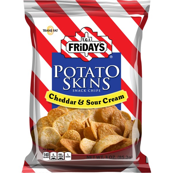 - 6 3.0 oz. Bags of TGI Friday's Cheddar & Sour Cream Flavored Potato Skins Snack Chips