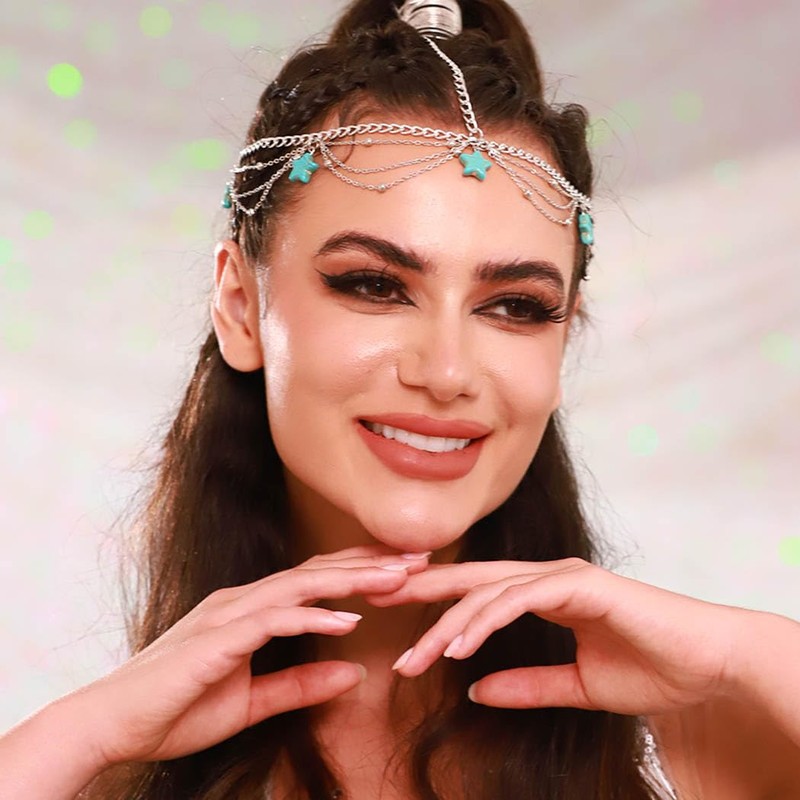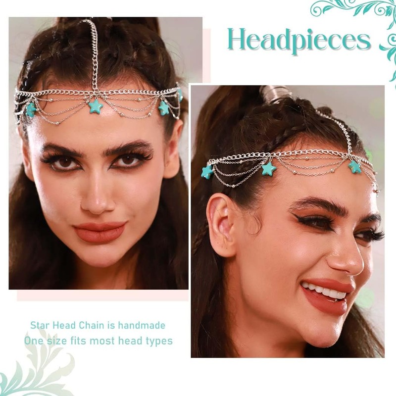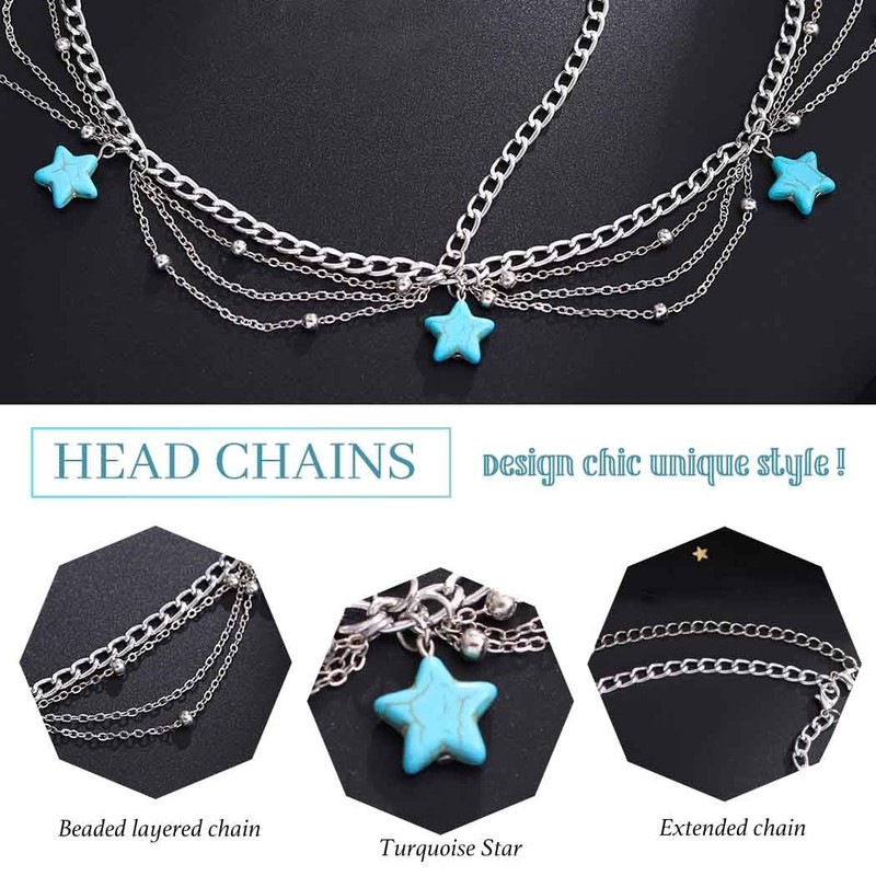 - Bohemian Turquoise head chain is made of star turquoise and beaded chain, not easy to break.
