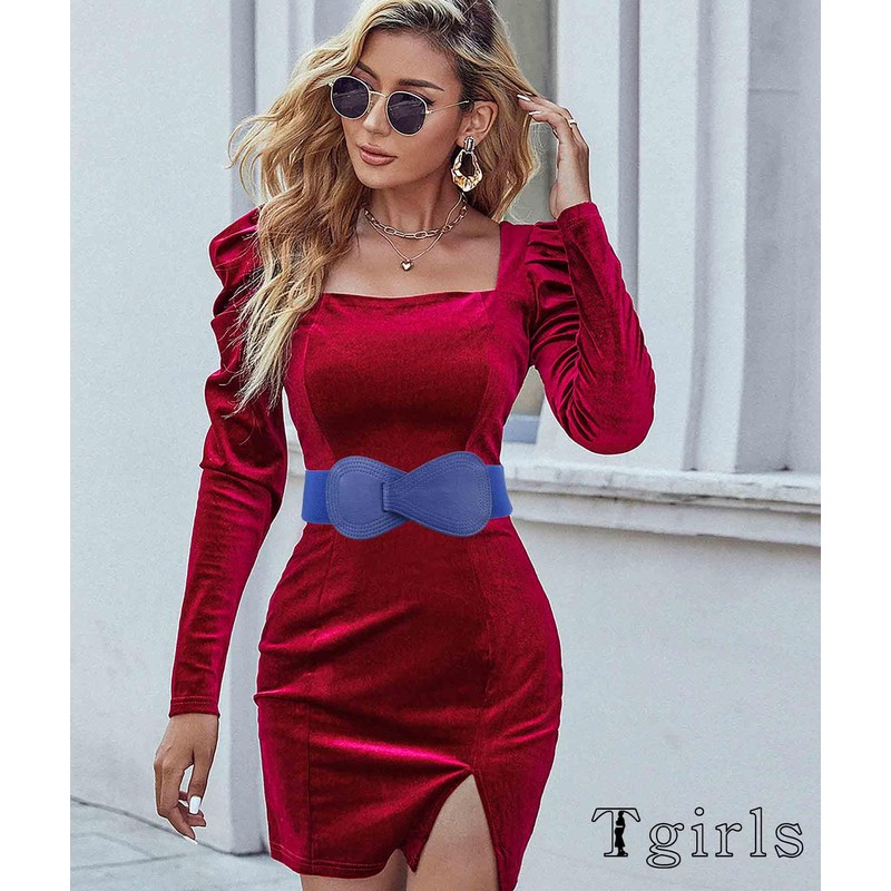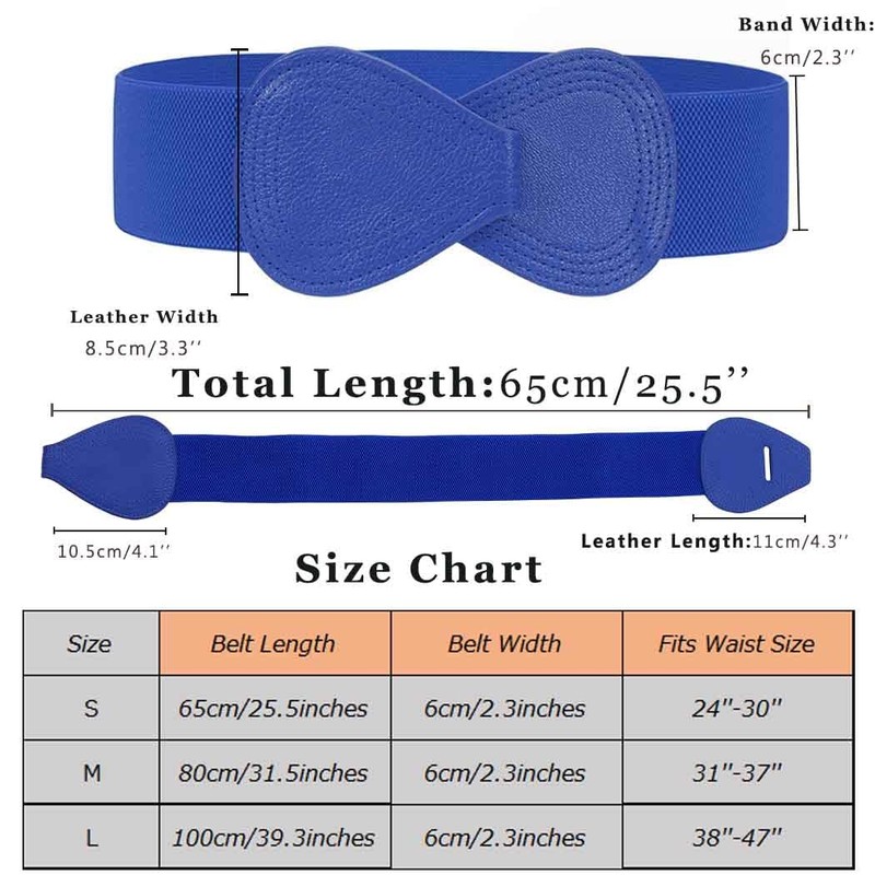 Tgirls - Cinturón elástico para mujer, cinturón de cintura ancha para vestidos, cinturón de hebilla entrelazada, cinturón elástico clásico, Azul, Fit waist size:24''-30''