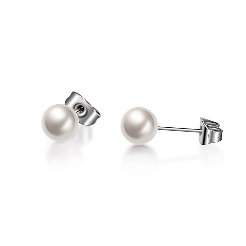 TGNEL Pure Titanium Earring White Pearl Earrings for Women, Hypoallergenic Ball Earring Studs for Sensitive Ears 8mm White