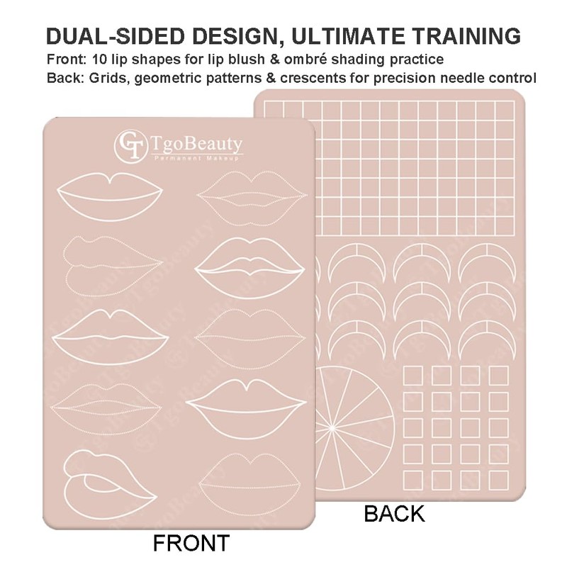 - Dual-Sided Design:Front features 10 different lip shapes for lip blush/ombre practice, while the back includes grids, geometric patterns, and crescents for precision training.