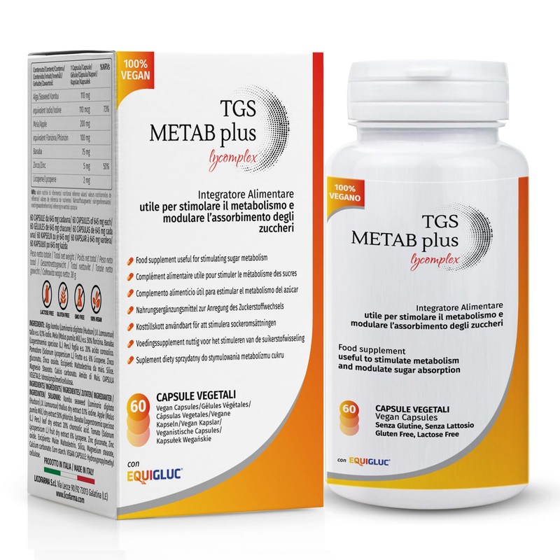 - Indications: TGS Metab Lycomplex is an innovative dietary supplement based on Equigluc (apple extract titrated 50% in Florizin), Kombu algae, banaba extract, zinc gluconate and lycopene that stimulates metabolism and modulates the absorption of sugar. Thanks to its formulation, it can also be useful in the treatment of metabolic syndrome.