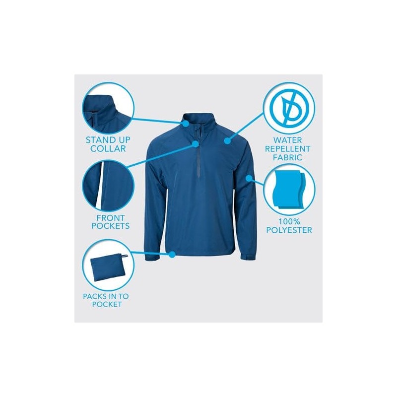 TGW Men's Packable Vapor Golf Rain Shirt Jacket Pullover for Golfing Grey 3Xl