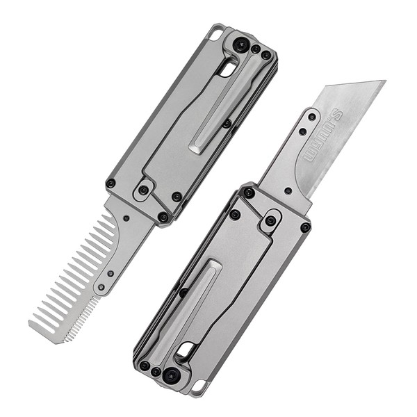 TGZUO Titanium Handle Utility Knife Carrot Comb Tactical Locking Knife Replaceable Trainer Tool Retactable Box Cutter with 10pcs Blades