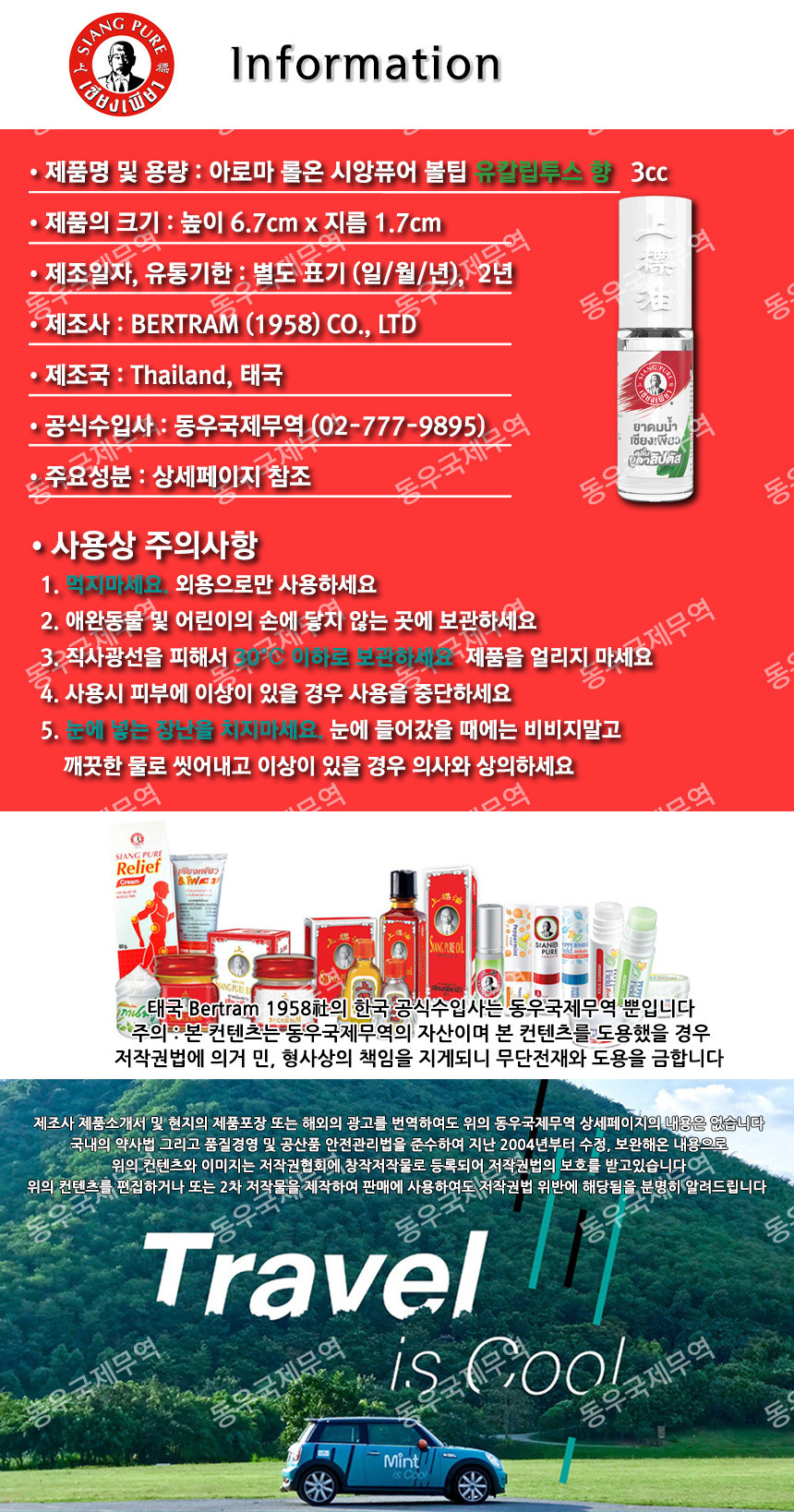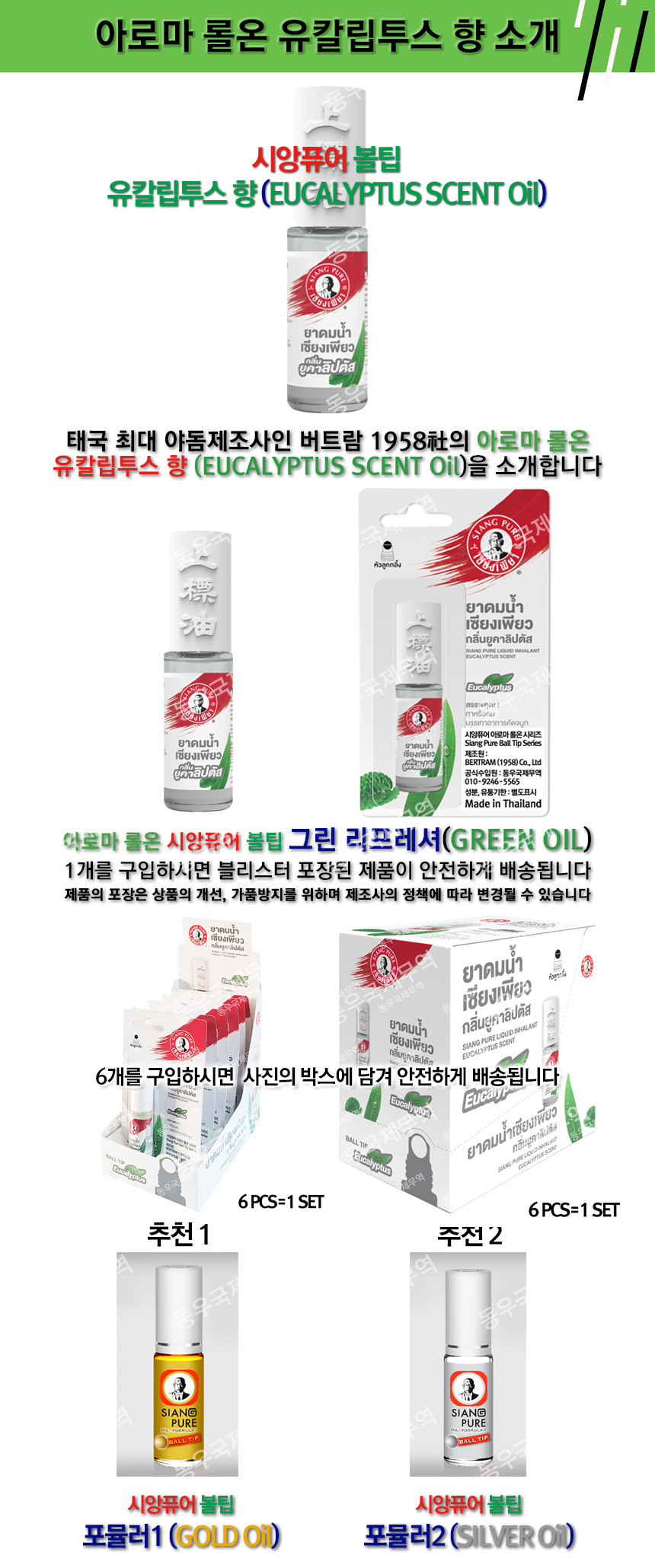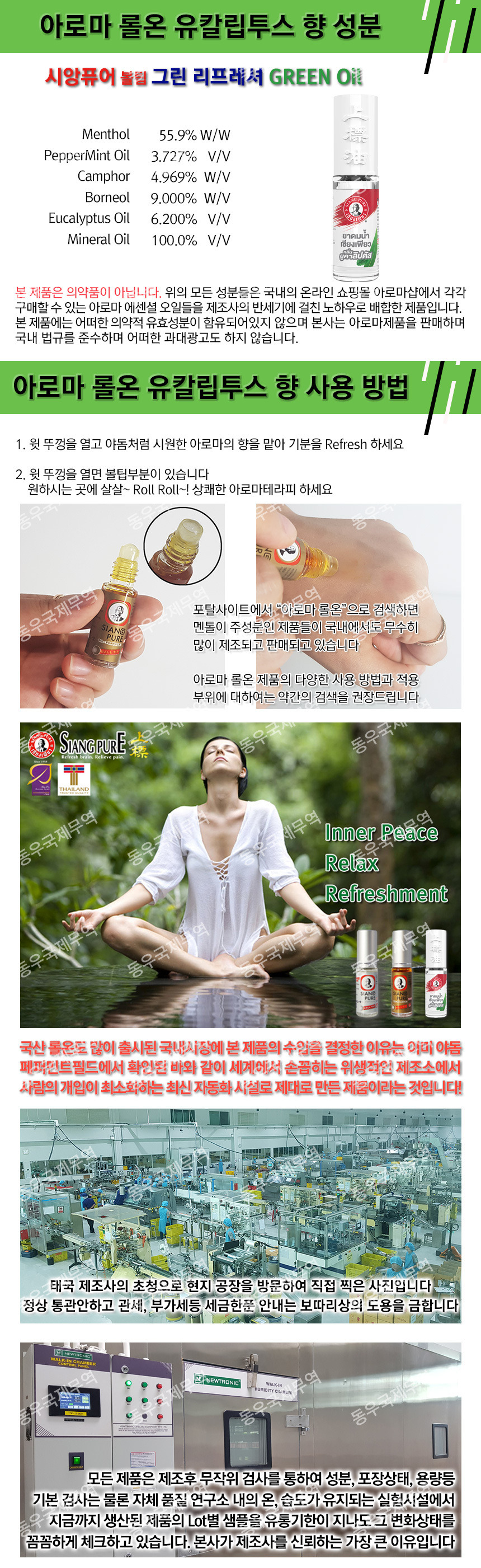 태국 아로마 야돔 롤온 시앙퓨어볼팁 그린 리프레셔