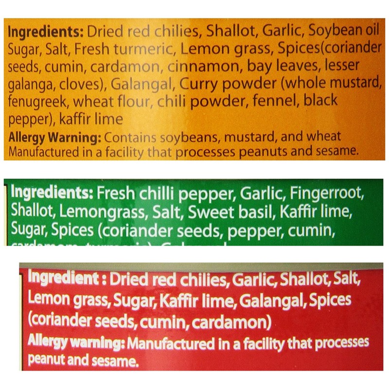 Thai Green Red Yellow Curry Pastes Set (Original Version), 4 Ounce (Pack of 6)