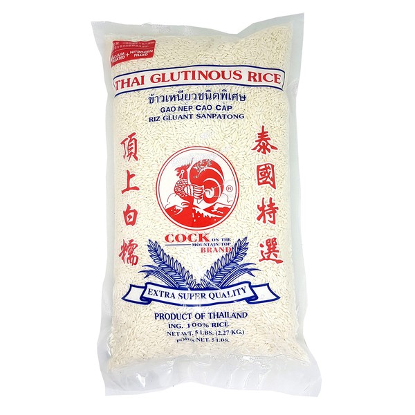 Thai Sanpatong Glutinous Sticky Rice Extra Super Quality Cock Brand 5 lbs.