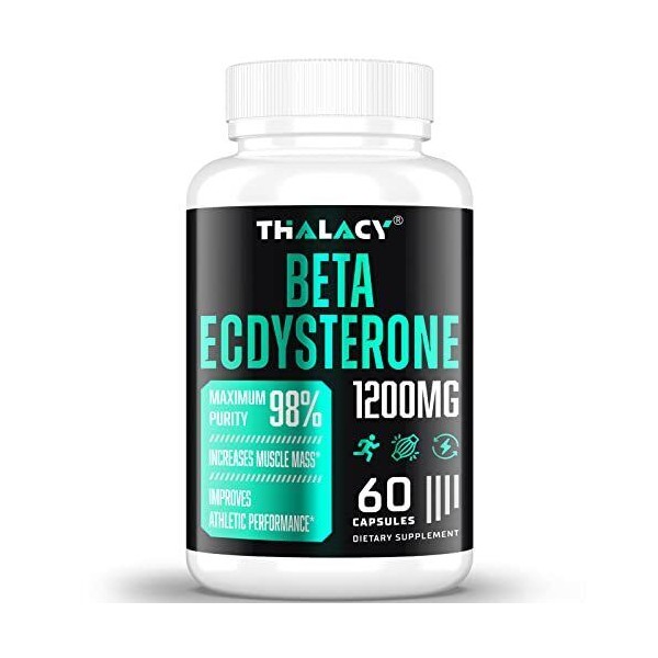 - 1200 MG Highest Beta Ecdysterone Formula : Thalacy leading formulation of 1200 mg ecdysterone is 100% natural plant-based and provides better muscle-building results. Say goodbye to those 250 mg~500 mg per serving Ecdysterone Supplements. You will achieve better output with Thalacy Beta Ecdysterone supplement