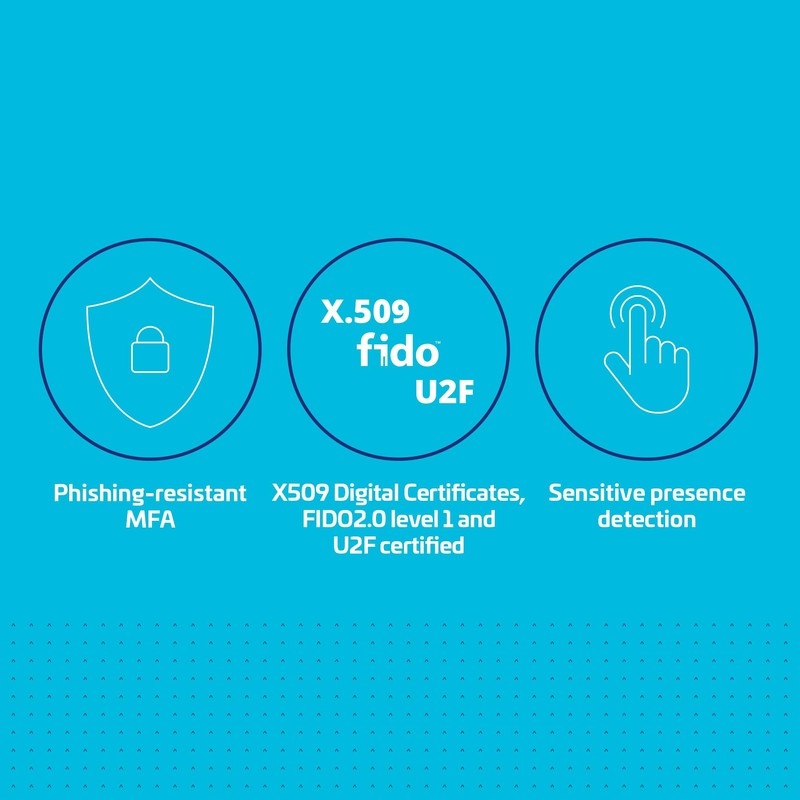 - ENHANCED USER ADOPTION: Features a sensitive presence detector on the USB key, providing ease of use and superior security. Certified for U2F and FIDO2, ideal for individuals who want to secure access to their personal online accounts - Microsoft, Google, Twitter, Facebook, GitHub