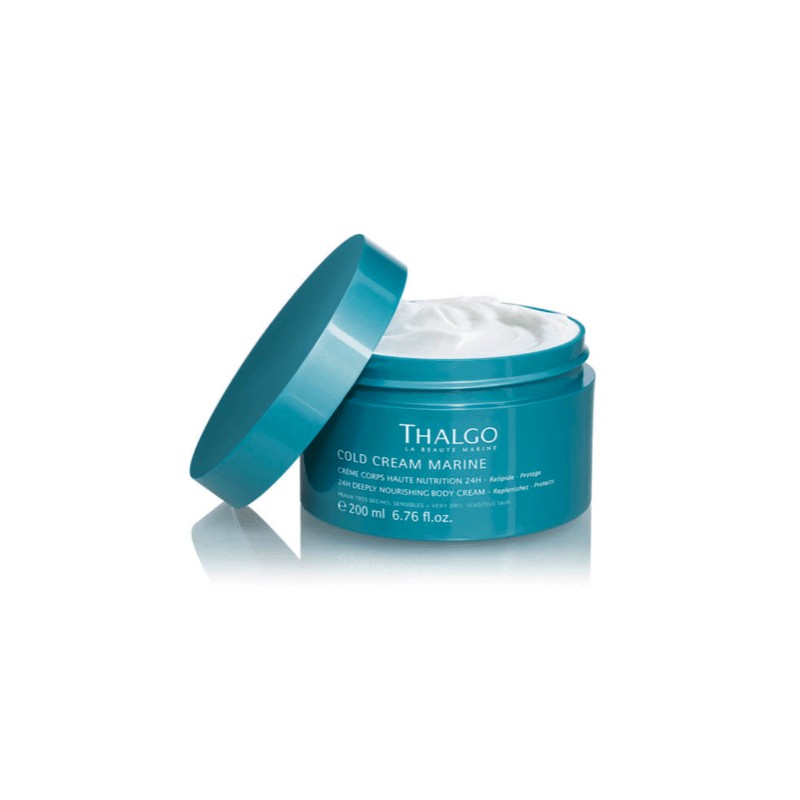 Thalgo Cold Cream Marine Deeply Nourishing Body Cream 200ml is a rich cream that deeply nourishes and repairs dry skin while providing long-lasting hydration. This cream is highly concentrated in nourishing active ingredients and contains a long-lasting hydrating complex with 24-hour moisturising power that soothes and repairs dry skin. Its rich and creamy texture is quickly absorbed by the skin, leaving it feeling soft, supple, and comfortable. The cream's cold cream marine formula is enriched with natural marine ingredients that help to strengthen the skin's barrier function and protect it from external aggressions. What are the benefits and features of Thalgo Cold Cream Marine Deeply Nourishing Body Cream 200ml? Provides long-lasting hydration with a 24-hour moisturising complex. Soothes and repairs dry skin with nourishing active ingredients. Quickly absorbed by the skin, leaving it feeling soft, supple, and comfortable. Enriched with natural marine ingredients that help to strengthen the skin's barrier function. Protects the skin from external aggressions. Rich and creamy texture. Who is Thalgo Cold Cream Marine Deeply Nourishing Body Cream 200ml for? This body cream is perfect for those with dry skin who want to deeply nourish and repair their skin while providing long-lasting hydration and protection from external aggressions.