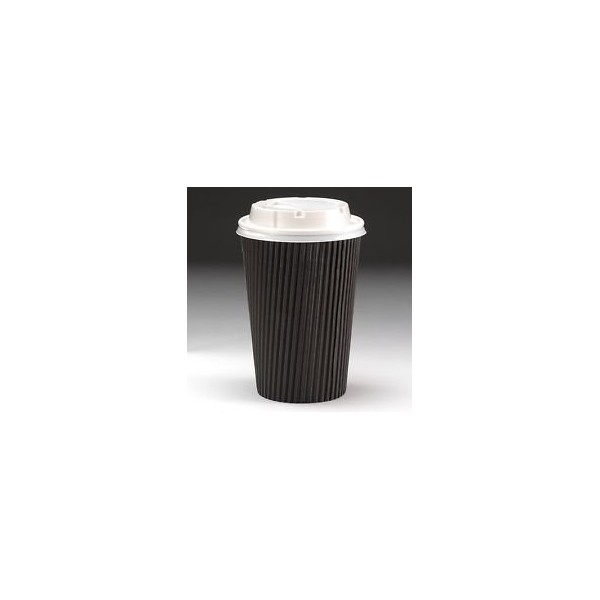 Thali Outlet® - 50 Disposable Ripple Paper Coffee Cups with lids 12 oz Black cup with White Lid