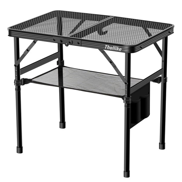 Thallike Portable Folding Grill Table, 2X1.3 FT Camping Picnic Table, Two Heights Available Outdoor Grill Table with Mesh Desktop, Outdoor Table for Picnic,Camping,BBQ,Beach