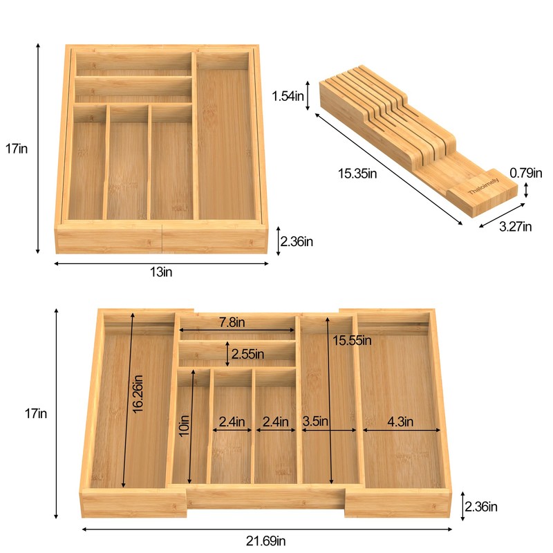 - Sturdy & Durable Bamboo Construction:Thalomely drawer organizer is made of natural and renewable bamboo,the drawer organizer is extremely durable and sturdy, and its surface is particularly smooth. Furthermore, the bamboo drawer organizer is easy to be taken care of, which can be easily wiped and cleaned with a towel.