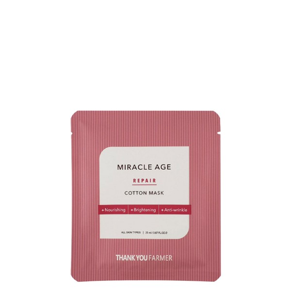 🌸 THANK YOU FARMER Miracle Age Repair Cotton Mask offers all-in-one care with a bottle of serum's nutrients in one sheet.