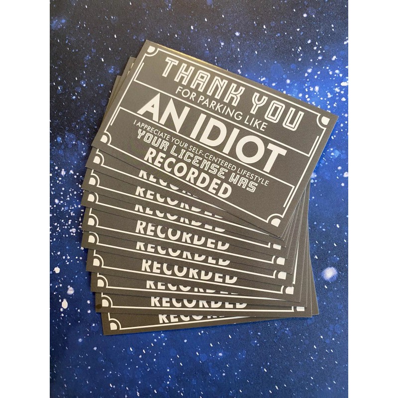 “Thank You for Parking Like An Idiot, I Appreciate Your Self-Centered Lifestyle, Your License Plate Was Recorded”, (10) Parking Cards. Blank on back to add your own personal message.