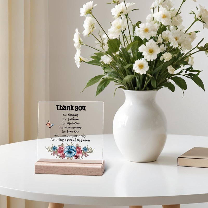 Thank You Gifts for Women Acrylic Plaque Teacher Appreciation Gifts Thank You Clear Desk Decor for Colleague Boss Manager Nurse Leaving Present for Colleague Leader Acrylic Plaque With Wooden Stand