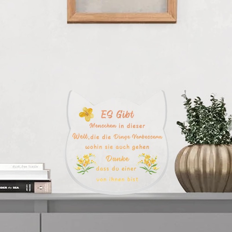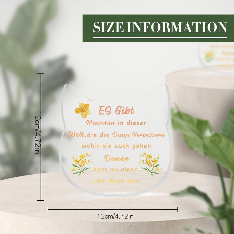 - THANK YOU GIFT The acrylic cat shaped plaque is a gorgeous piece of home decor with beautifully engraved patterns and heartfelt words. Subtly and deeply conveys endless love and gratitude to dad, mum, teacher, colleague, friend, lover