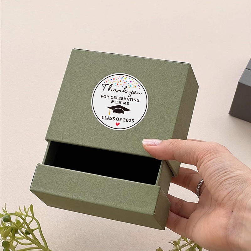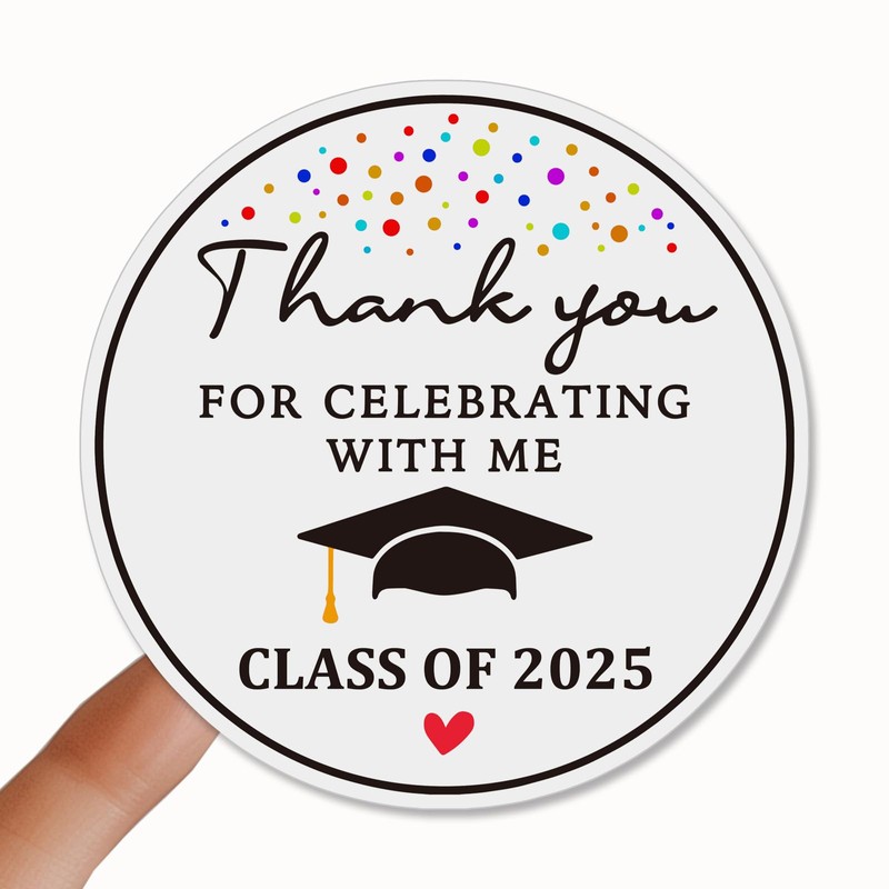 - Show Appreciation: These "Thank You Grad Cap Class of 2025" stickers are a perfect way to thank guests for celebrating your special day.