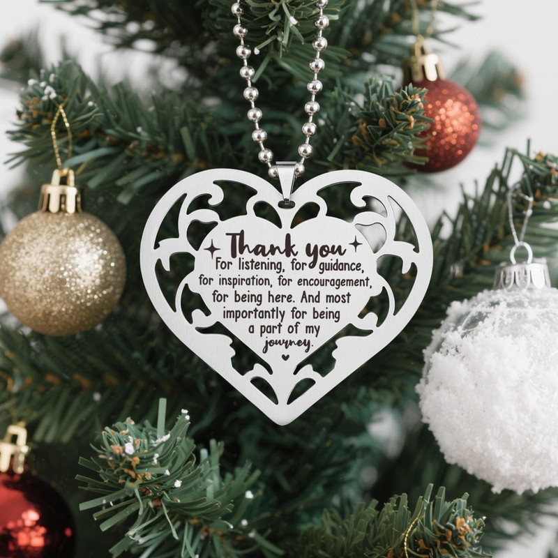 Thank You Hanging Christmas Ornaments, Thank You Appreciation Gift for Her Friends Mentor Colleagues Work Friend Teacher Stainless Steel Heart Hanging Keepsake YXX8