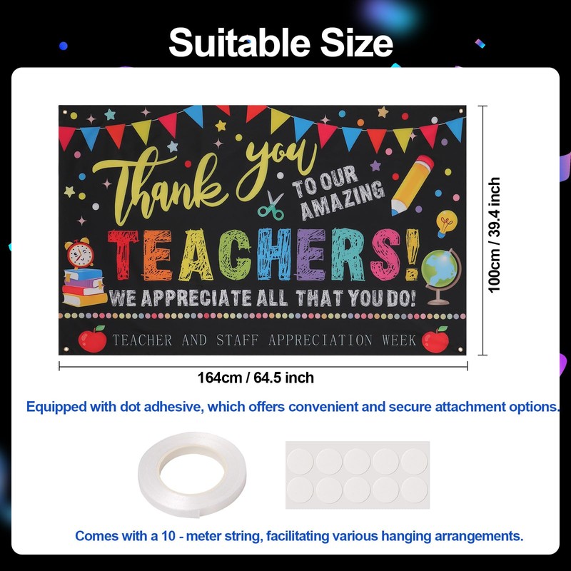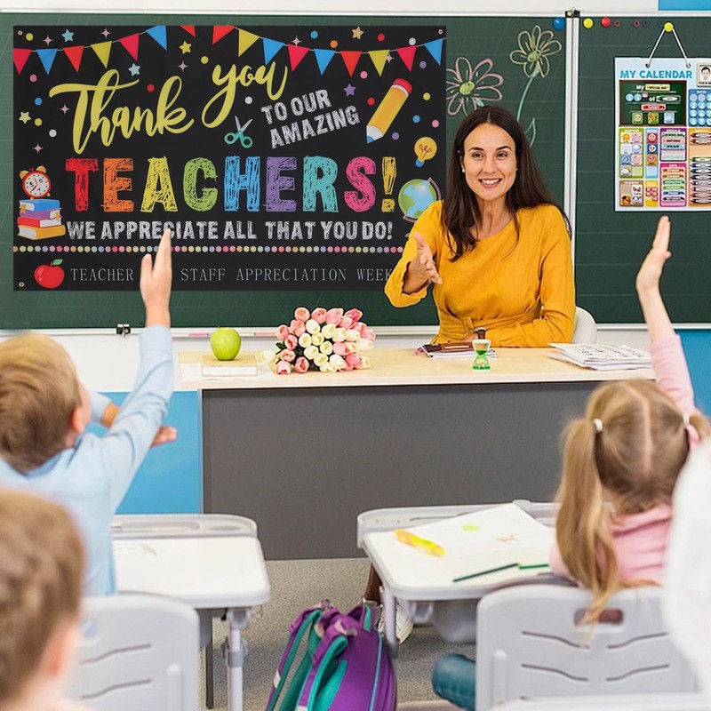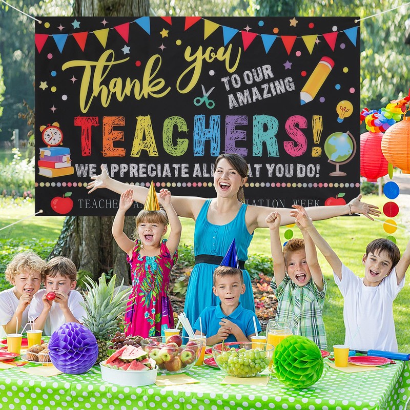 • Thank You Teachers Teacher Appreciation Week Backdrop Banner Decorations,