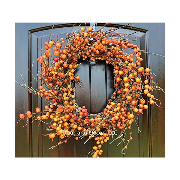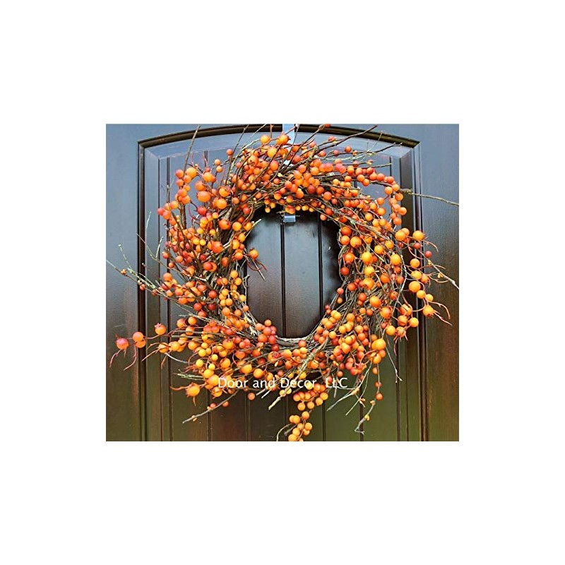 Thanksgiving and Fall Orange Berry Wreath on Grapevine Base in 22 Inch Diameter