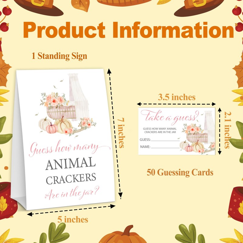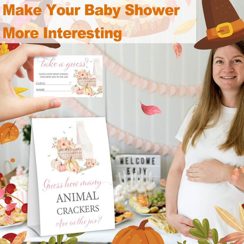 Thanksgiving Baby Shower Game Tickets, Guess How Many Animal Crackers Games, Fall Pumpkin Sign Decoration, Funny Party Games, 1 Sign With 50 Guess Cards-A08