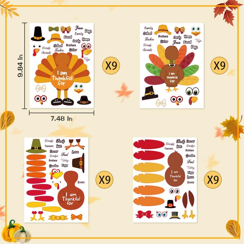 - 🍗Package Includes: 36 make-a-turkey sticker sheets, 4 designs, 9 of each