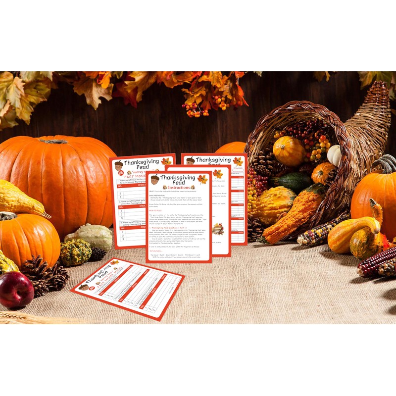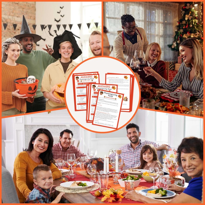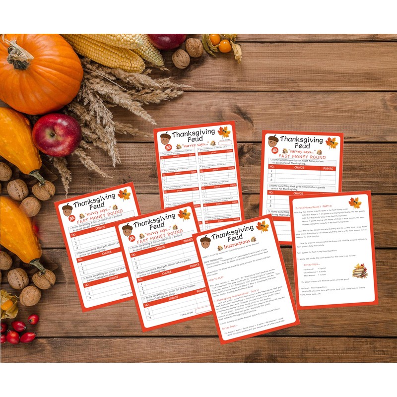 Thanksgiving Friendly Feud Game, Family Feud Quiz, Feud Trivia Quiz Baby Shower Game for Family Activity (30 Game Cards & 3 Fast Money Round Cards) Thanksgiving Party Games Decorations Supplies-SG4
