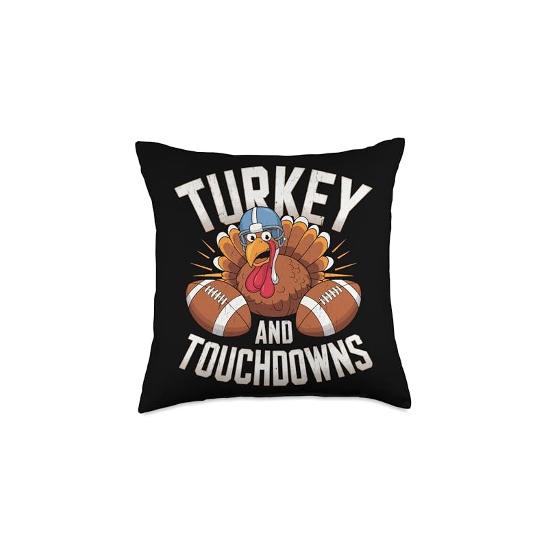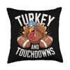 Thanksgiving Game Day Turkey Football Turkey And Touchdowns Throw Pillow