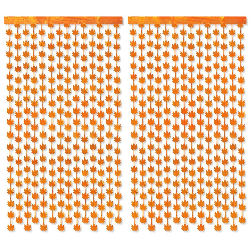 - Impressive Party Decor:Set of 2 orange maple leaves foil fringe curtains, each 3.3 x 6.6 ft, ideal photo backdrop for parties.