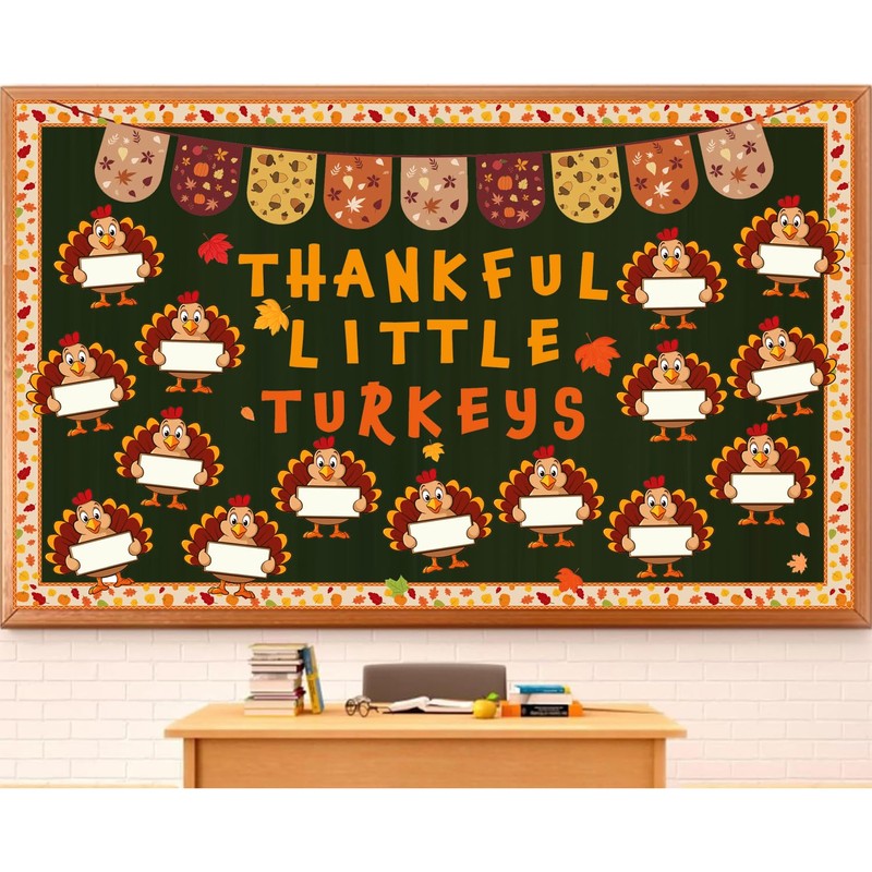 - Use as a Thanksgiving bulletin board or on your classroom door. This Turkey bulletin board kit is the perfect way to liven up your classroom this Thanksgiving. Amaze your students with this Fall bulletin board kit complete with letters, bunting, boarders.
