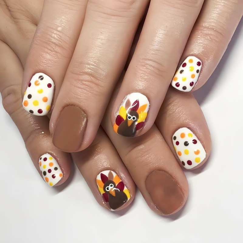 Thanksgiving Turkey Press on Nails Polka Dots Fake Nails with Nail Glue Exquisite Design Cute False Nails for Women Nail Art
