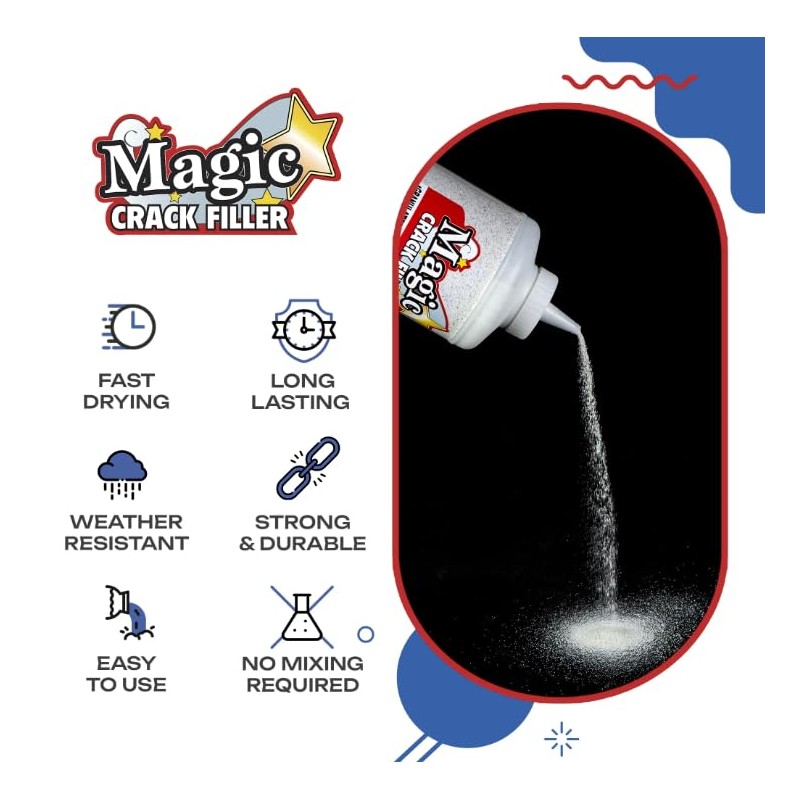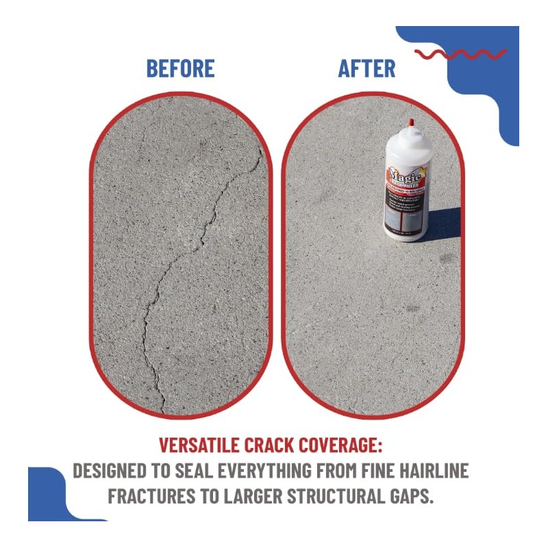- REFRESH YOUR PROPERTY Magic Crack Filler's formula resists and slows down water intrusion, giving your property that well-cared for look. Once filled with Magic Crack Filler, cracks are almost unnoticeable.