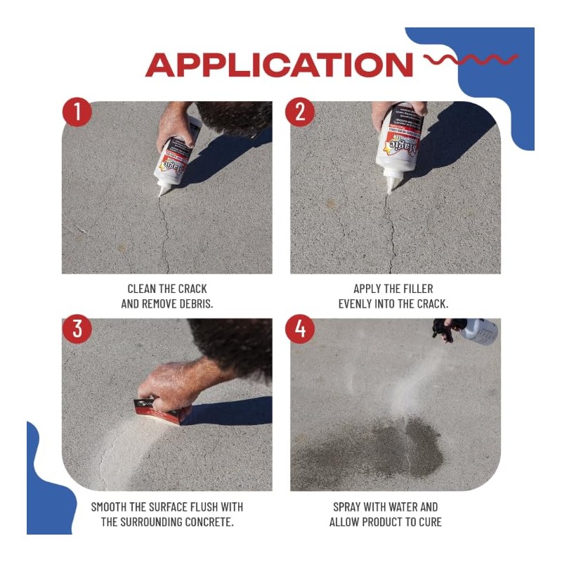 Magic Crack Filler This product's dry granulated powder fills crack fissures from top to bottom like magic. As it dries it becomes the consistency of durable rubber. Cracks virtually disappear (like Magic!), and the surrounding areas remain unaffected. Our product eliminates the visual unpleasant appearance of a crack and can fill the most minute of cracks that cannot be addressed with any other product. Magic Crack Filler is a simple, non-flammable product for filling any horizontal crack in concrete, stone work, masonry and asphalt including, clay products and natural stone. It can repair cracks ranging from hairline to 2 inches wide thus making it ideal for pool decks, driveways, walkways, commercial entries, patios and vehicular drive areas (to name just a few). Other crack fillers are messy and require cumbersome techniques. This product's dry granulated powder fills crack fissures from top to bottom. As it dries it becomes the consistency of hard rubber. Cracks virtually disappear (like Magic!) and the surrounding areas remain unaffected.