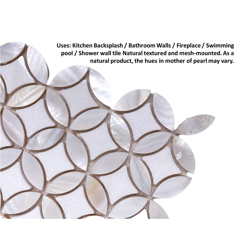 Thassos with Mother of Pearl Flower Wall Floor Tile On Mosaic Sheet for Kitchen Backsplashes, Bathroom Shower, Floor Tile, Spas, Pools (1)