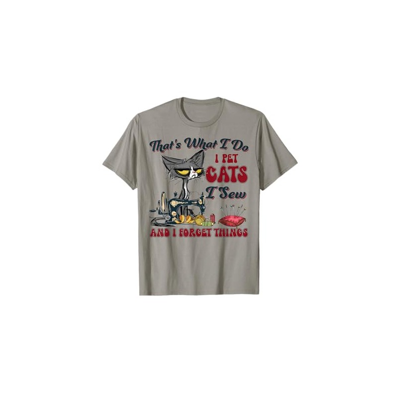 - That's What I Do I Pet Cats I Sew And I Forget Things Cat t-shirt. Great idea for sewing enthusiasts and cat lovers. Great for casual outings or sewing club meetings. Featuring a playful feline, it's a fun addition to any sewer's wardrobe.
