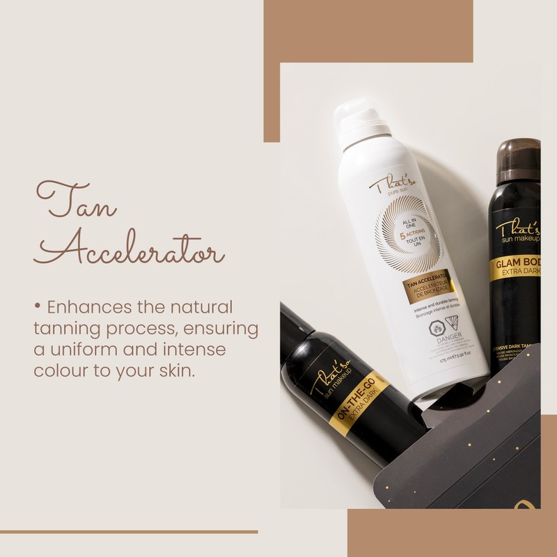 - 4-IN-1 TANNING KIT: Includes one Double Face Tanning Mitt, one 175 ml bottle of Tan Accelerator, one 150 ml bottle of Glam Body and one 125 ml bottle of On the Go.