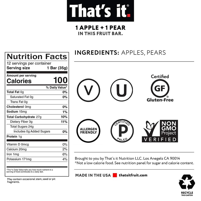 Thats It Apple and Pear Fruit Bar, 1.2 Ounce (Pack of 12)