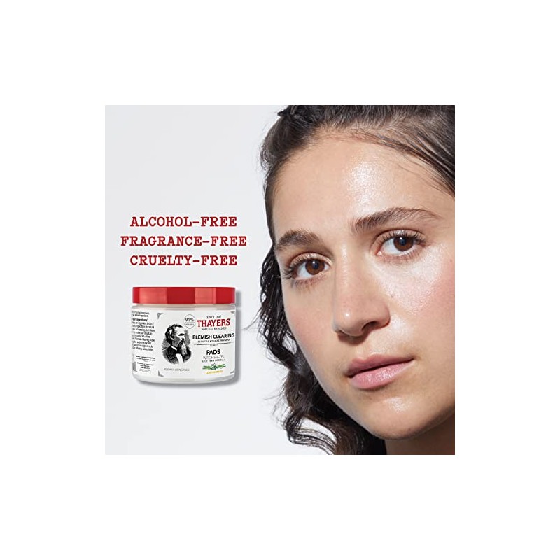 Thayer's blemish clearing pads are formulated to speed relief to blemishes and treat them with home-grown healing power. These textured pads gently exfoliate the skin, buffing away impurities that lead to breakouts. This alcohol-free elixir is formulated with Thayer's proprietary blend of soothing and cleansing witch hazel and hydrating and healing Filet of aloe Vera, along with skin- renewing tea tree oil. Maximum strength 2% salicylic acid treats clogged pores from the inside-out, banishing existing blemishes and helping to prevent new ones from forming.