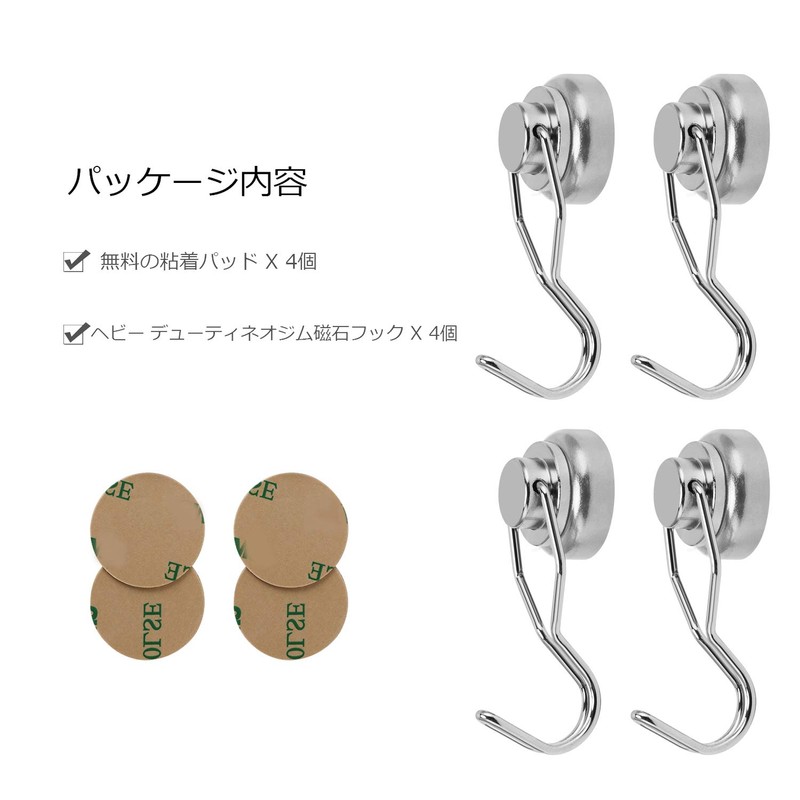 Pack included: 4 x Swivel Magnetic Hooks, 4 x 3m Adhesive Pads