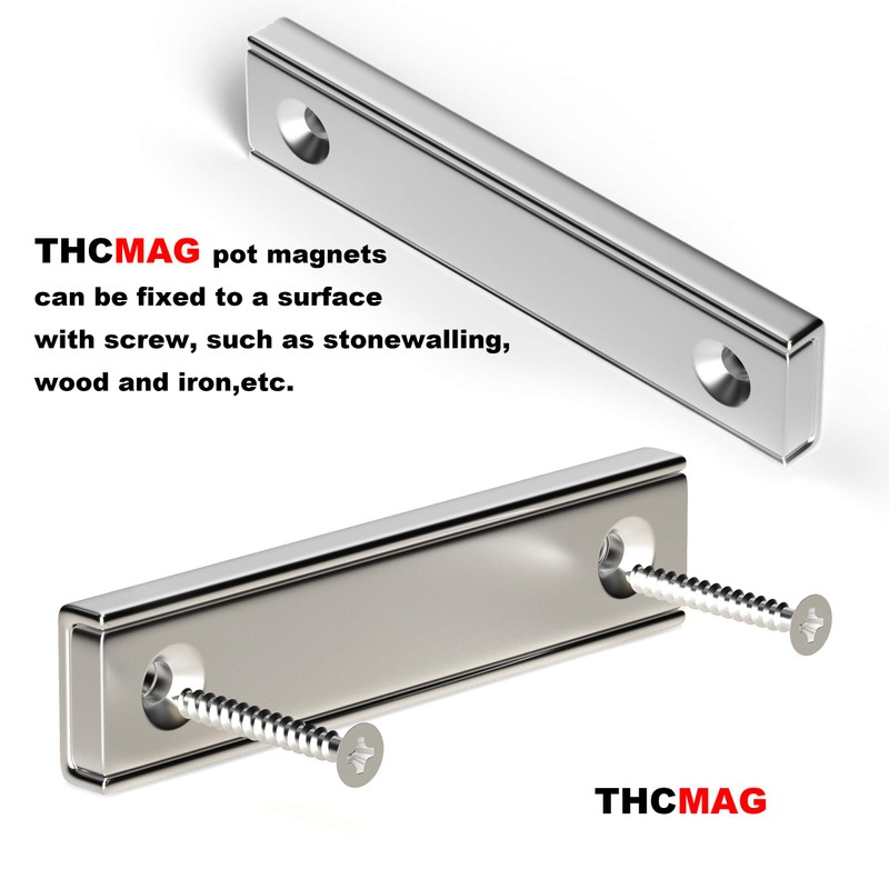 THCMagorilla Neodymium Rectangular Pot Magnets 88 lbs Pulling Force 120x13.5x5mm Pack of 5 with Countersunk Hole,Mounting Screws,Strong,Industrial Strength Rare Earth Magnets for Home, Workplace