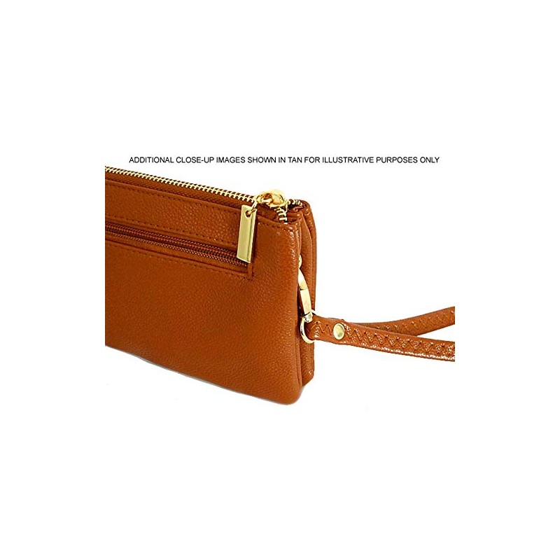 - Multi pocket crossbody clutch bag with detachable wristlet strap and long over shoulder strap