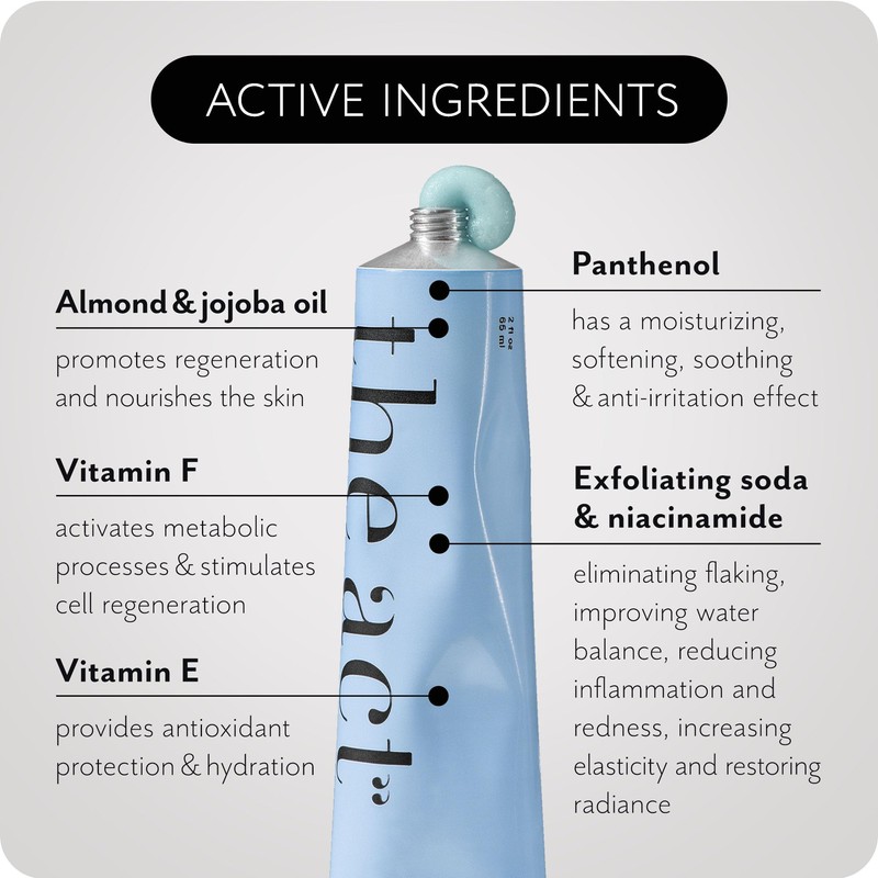 - Key Ingredients for Optimal Skincare: Featuring baking soda, this face exfoliator supports skin's water balance, helps to calm the appearance of redness, and enhances elasticity, making it a key product in your skincare regimen. Panthenol contributes to moisturizing, softening, and soothing the skin for a more comfortable feel.