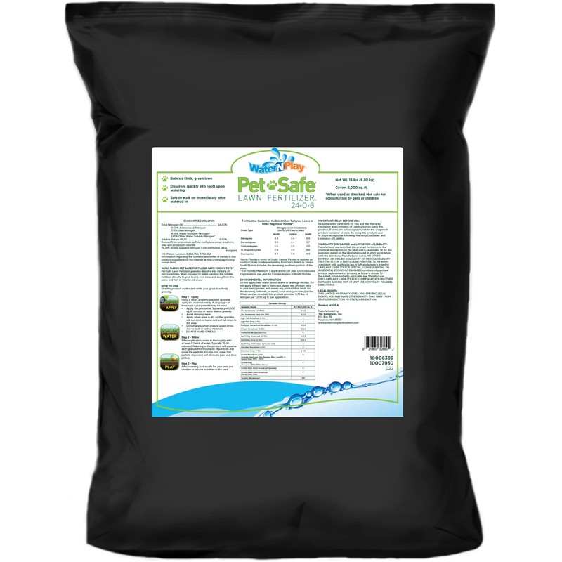 - Pet Safe 24-0-6 is a lawn fertilizer designed to reduce time off your lawn during lawn care applications