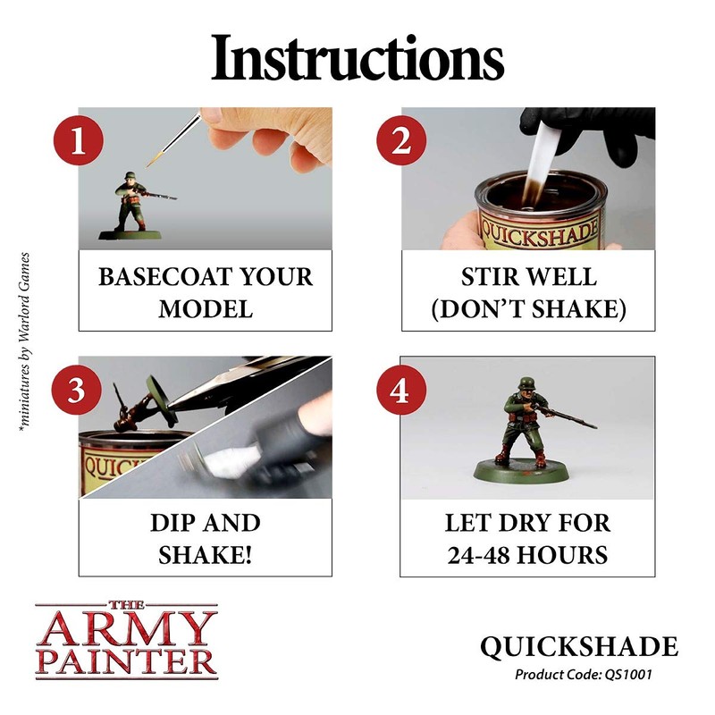 - SHADE AND WASH YOUR MINIATURES FAST - An entirely unique product on the market, it will enable you to paint the army of your dreams in no time at all. Just apply it with a brush or simply dip your base-coated miniatures, shake, and you are almost done.